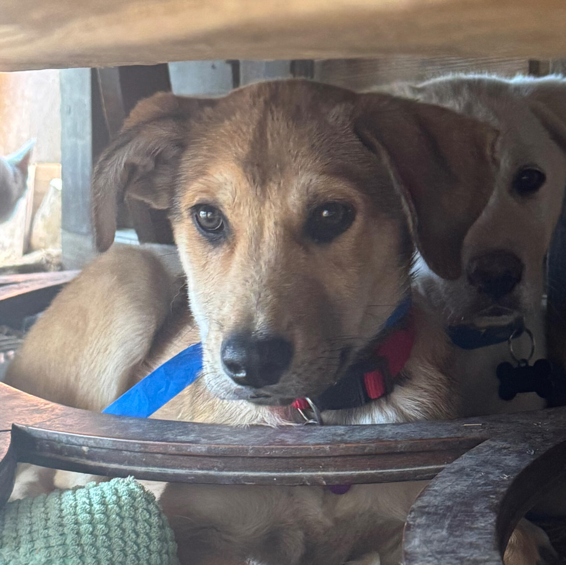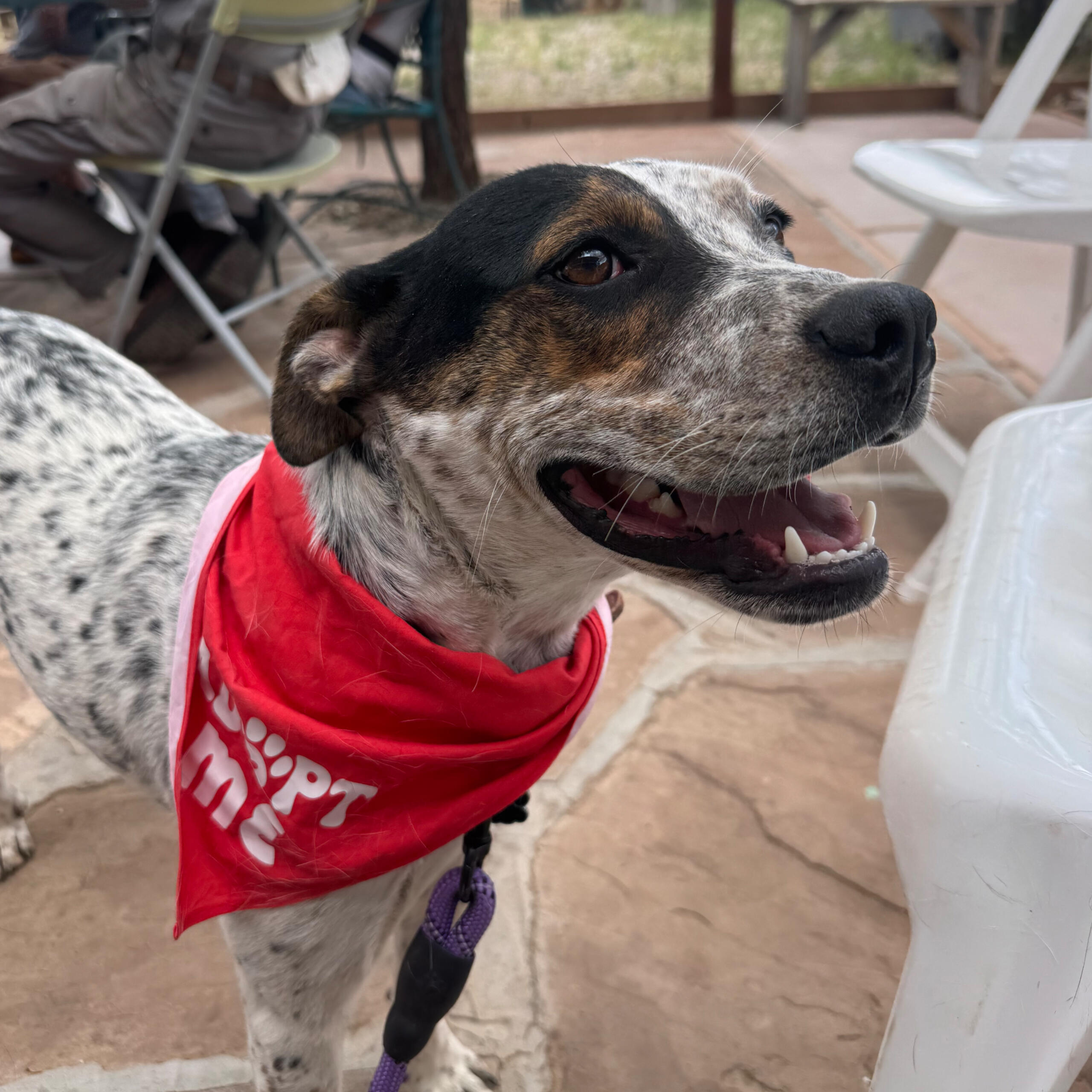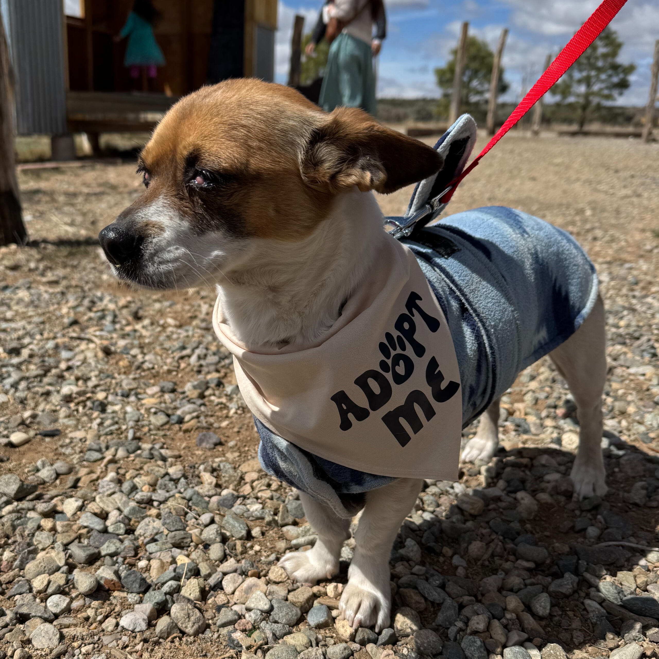 Gump is an adult male goofball. We think he is a red heeler & Beagle mix. 100% good boy. He was dumped in Taos with his companion, Bubba. Gump is neutered, microchipped and up to date on vaccinations.