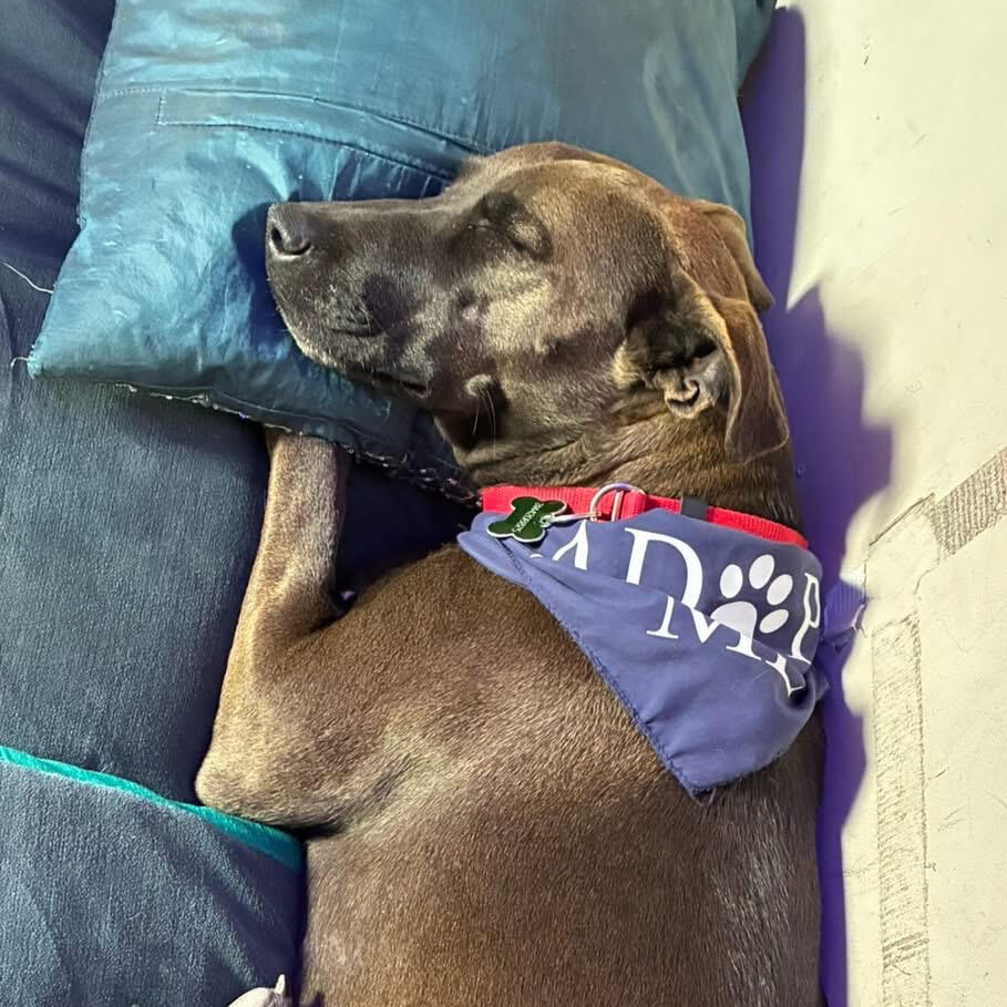 She was dumped at a gas station but doesn’t let that abandonment affect her ability to form bonds with people and other dogs.